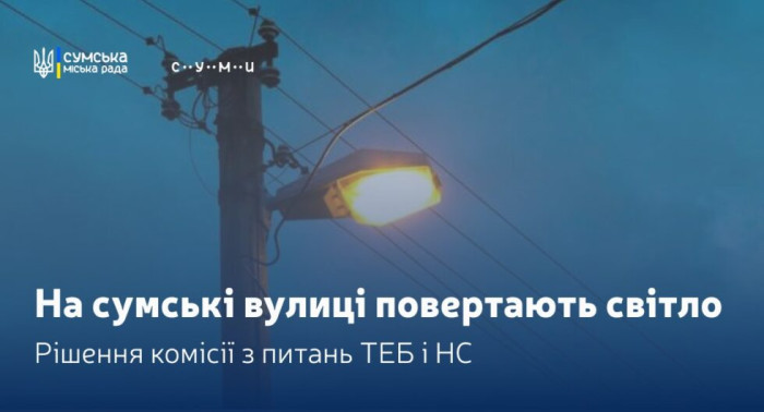 Відсьогодні у Сумах відновлюють роботу вуличного освітлення. Відповідне рішення ухвалила комісія з питань ТЕБ та НС Сумської громади.