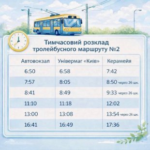 Від завтра, 3 квітня, у Сумах змінюється графік руху тролейбусного маршруту №2. КП «Електроавтотранс» вводить додаткові рейси, які курсуватимуть на постійній основі до завершення поминальних днів.