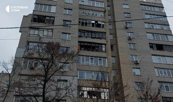 За словами в.о. мера Сум Артема Кобзаря, внаслідок нічної атаки вибиті вікна у навколишніх будинках, у будівлі облради та комплексі “Кристал”.