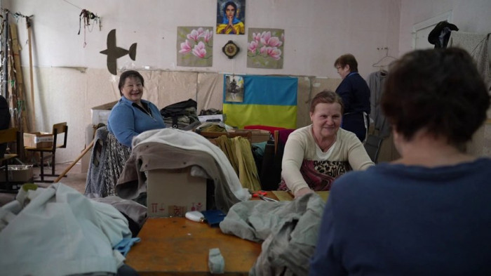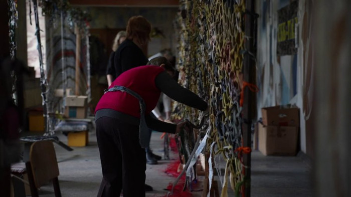 Волонтери “Сумського бабського батальйону” плетуть маскувальні сітки для військових. Суспільне Суми