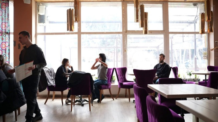 Владислав останні два роки працює офіціантом. Аби відволіктися від вибухів та загроз, персонал кафе намагаються не говорити з відвідувачами про війну.