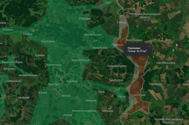 Наразі окуповано ворогом на Сумщині близько 294 кв. км, у «сірій» зоні ще майже 100 кв. км від Шосткинського району (Есманська громада) до Сумського (Хотінська, Юнаківська, Миропільська та Краснопільська).