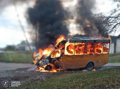 Миколаївська сільська громада: російський дрон влучив у мікроавтобус (маршрутку). Всередині був лише водій, який устиг залишити транспорт до влучання. Мікроавтобус загорівся, але обійшлося без жертв і постраждалих. Через повторні атаки на транспорт, перевізник призупиняє рух у напрямку Миколаївської громади.