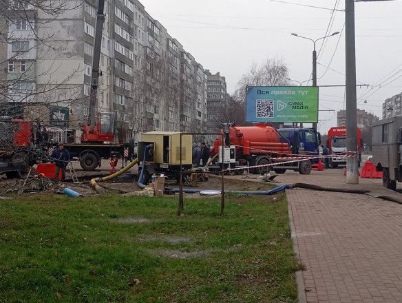 З вечора 17 листопада у Сумах зупинені усі водозабори для проведення термінових аварійно-ремонтних робіт на каналізаційному напірному колекторі. Начальник Сумської МВА Сергій Кривошеєнко розповів Суспільному про те, на якому етапі роботи та коли планують відновити водопостачання та водовідведення.