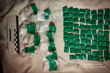 Під час санкціонованого обшуку за місцем мешкання зловмисника, правоохоронці виявили та вилучили 90 зіп-пакетів з кристалічною речовиною білого кольору, зовні схожою на психотропну речовину «PVP», а також електронні ваги та мобільний термінал, які також є знаряддям злочину.