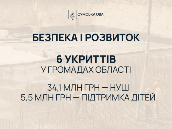 Важливим пріоритетом залишається безпека освітнього процесу. Майже 34,8 млн грн буде спрямовано на завершення облаштування укриттів у школах, роботи з яких розпочато у 2025 році. Йдеться про реалізацію 6 проєктів у Сумській, Кролевецькій та Шосткинській громадах. Це дозволить зробити навчання безпечнішим для дітей та педагогів.