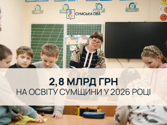 У 2026 році з державного бюджету місцевим бюджетам Сумської області передбачено понад 2,8 млрд гривень субвенції на підтримку та розвиток освітньої галузі. «Освіта залишається одним із ключових пріоритетів навіть у складних умовах війни. Наше завдання – щоб діти Сумщини мали можливість навчатися, а вчителі – стабільні умови для роботи. Паралельно працюємо над безпекою освітнього процесу, зокрема облаштуванням укриттів у школах», – зазначив начальник Сумської ОВА Олег Григоров.