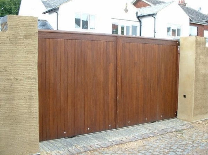 Дерев’яні ворота — класичний варіант, який завжди асоціюється із затишком, теплом та природною красою. Їх виготовляють з різних порід деревини: сосни, дуба, клена, які мають різні характеристики міцності та нюанси зовнішнього вигляду.