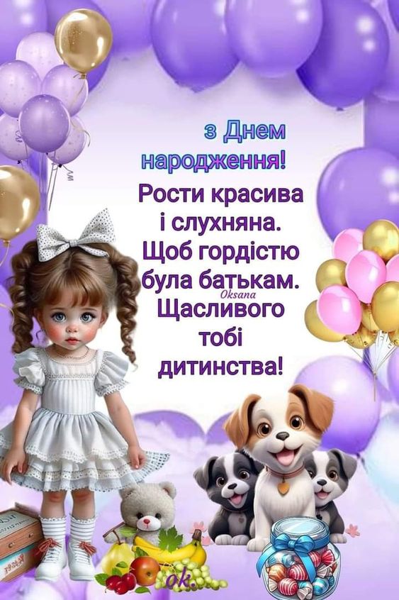 Вітаю з народженням донечки та бажаю, щоб крихітка росла гарною квіткою, вільною птахою, щасливою людиною, талановитою натурою, чарівною паняночкою. Бажаю донечці та батькам здоров’я, успіху, вдачі, усіх радощів життя, любові та поваги!