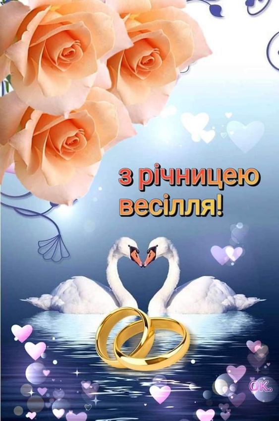 Кожен рік у шлюбі переводить вас на новий рівень у стосунках. Сьогоднішня річниця — ваше спільне досягнення, ваш крок до золотого весілля та вічної любові! Хай ваш життєвий шлях буде легким та приємним, хай почуття міцніють з роками, хай спільний політ душі дарує натхнення!