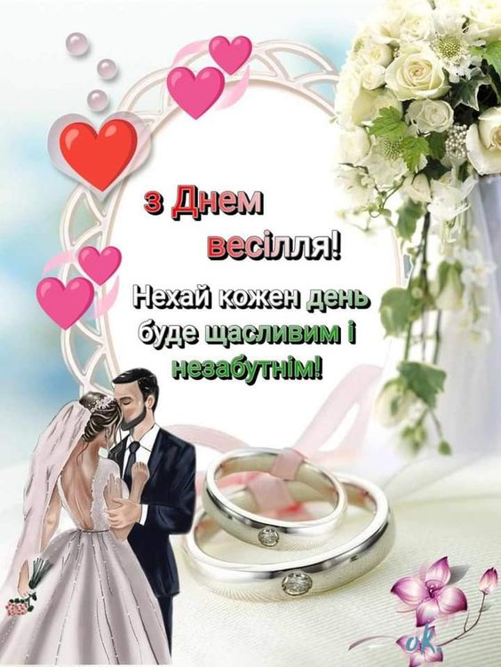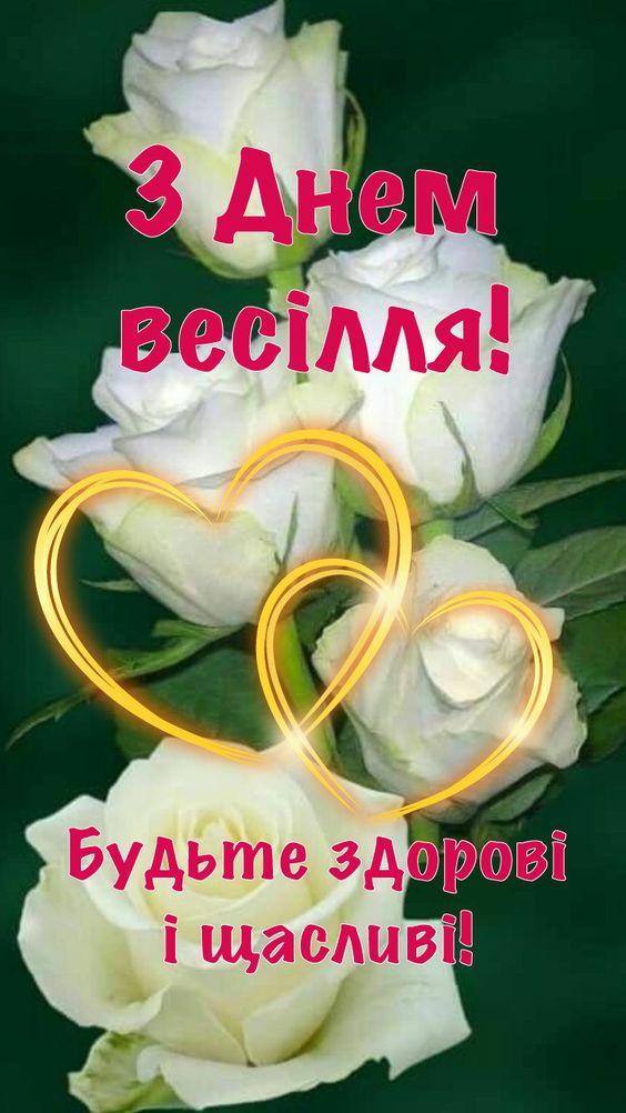 З річницею весілля! Хай кохання зігріває, надихає, мотивує. Бажаю ніжності і пристрасті, радості і наснаги! Хай кожна хвилина дарує яскраві емоції та почуття. Хай ваша історія кохання буде найкрасивішою у всьому світі!