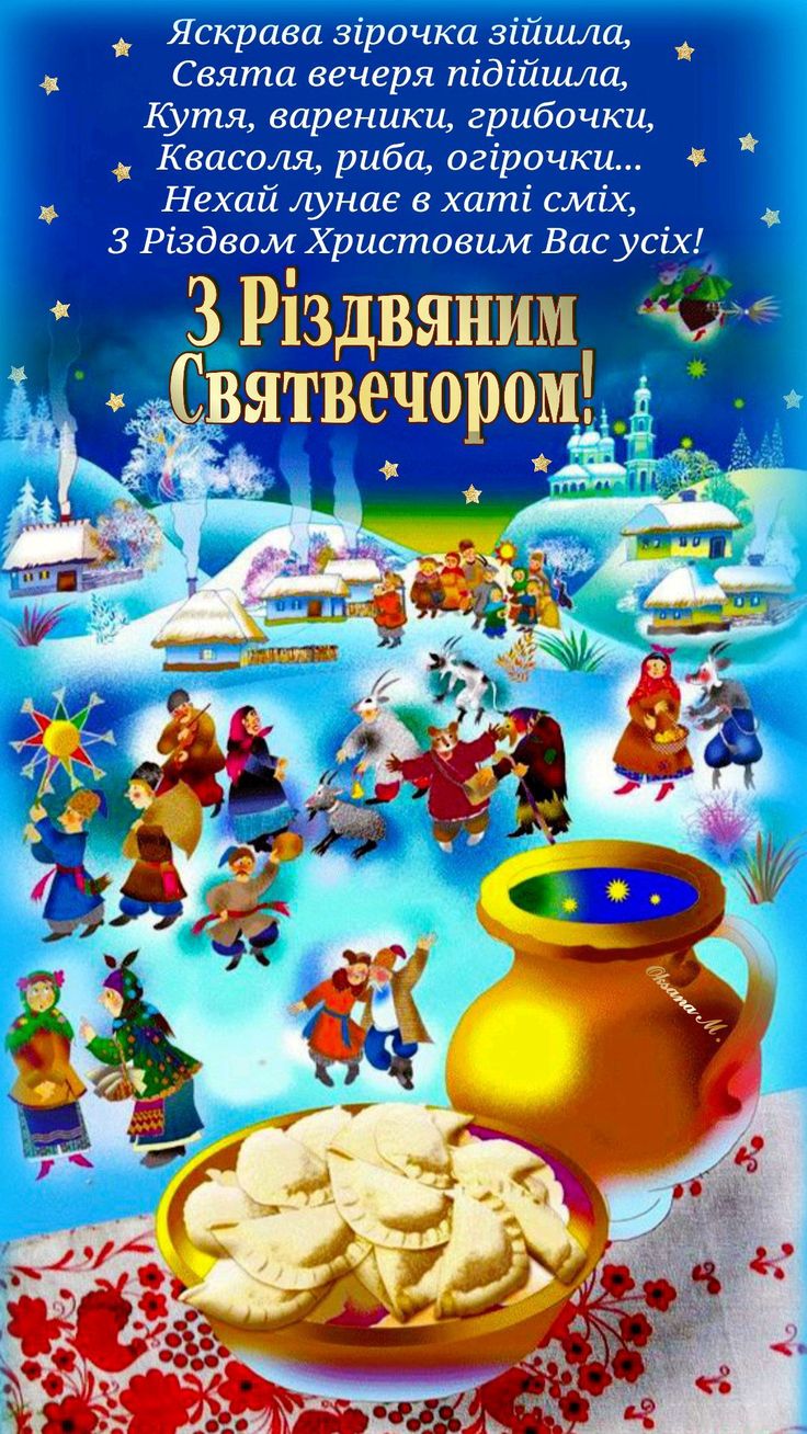 Вітаю з Різдвом Христовим та від усього серця бажаю, щоб усе лихе минало, щоб для душі лунала пісня щастя, щоб у житті траплялось тільки добре, щоб це велике свято розпочало для тебе нову чудову історію, щоб різдвяна зірочка здійснила твою мрію.