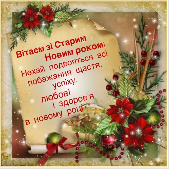 Вітаю зі старим Новим роком. Бажаю усі невдачі залишити у минулому, бажаю з новими надіями, яскравими мріями, добрими помислами увійти в новий рік. Нехай в твоїй родині всі будуть здорові, нехай для тебе цей рік принесе багато щастя, радощів, любові та добробуту