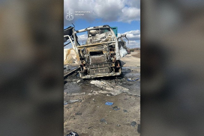 Вантажівка, яку атакував російський безпілотник 16 березня 2026 року. Сумська обласна прокуратура