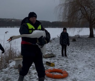 Сьогодні на озері Чеха у Сумах розгорнулася операція з порятунку лебедів, які опинилися у крижаному полоні через різке похолодання.