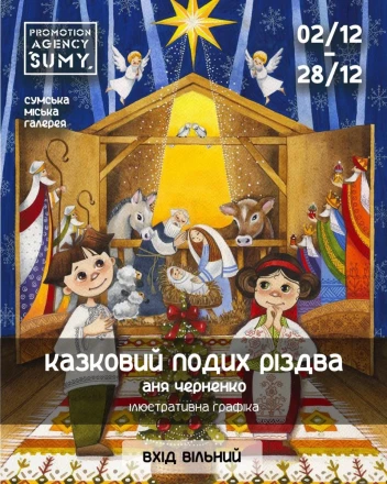 О 16:00 розпочнеться відкриття традиційної різдвяної виставки Ані Черненко. Художниця, архітекторка за фахом, працює в техніці ілюстративної графіки.