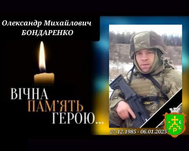 6 січня 2025 року стрілець-помічник гранатометника 2 штурмового відділення 33-го окремого штурмового полку Сухопутних військ ЗСУ, солдат Олександр Михайлович БОНДАРЕНКО загинув в ході виконання бойового завдання на Курщині.