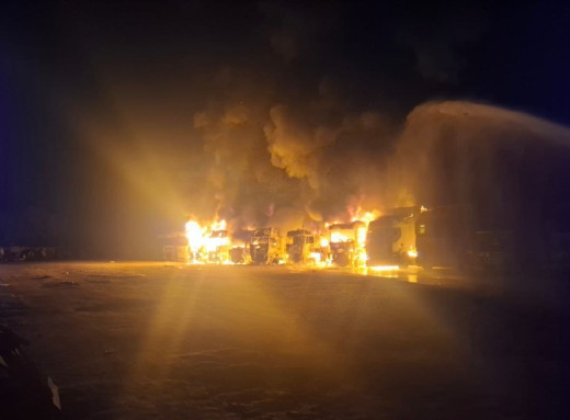 Загорілися 7 приватних вантажних автомобілів з напівпричепами.