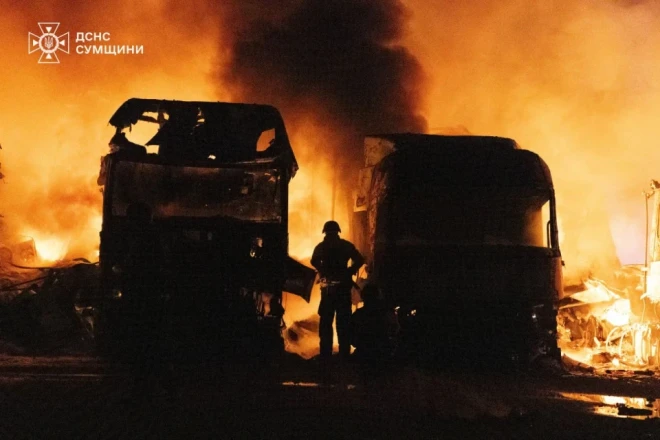 Сьогодні вночі ворог атакував місто Суми безпілотниками, що призвело до пожежі.