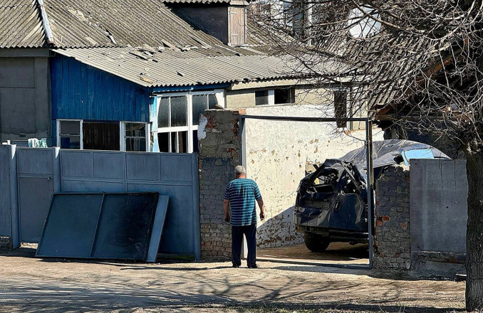 Це не перша атака на цю вулицю, розповідає Наталія, та раніше наслідки були менш масштабними. Цього разу, окрім ущент зруйнованого гаража, посічено будинки та вибиті вікна. У жінки ударною хвилею уламки засипали двір.