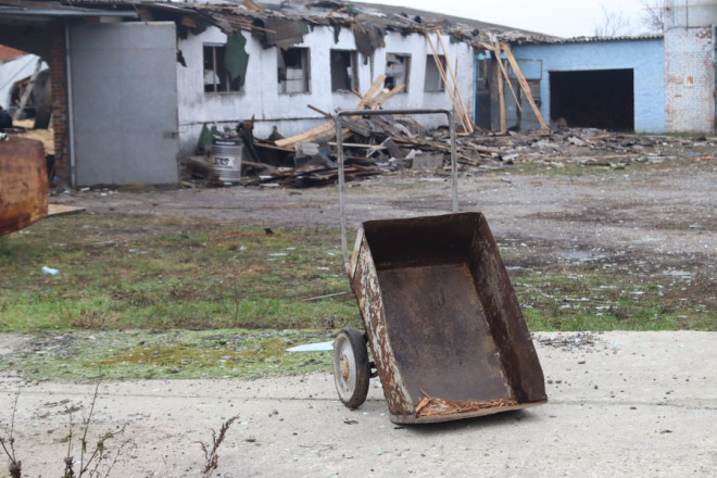 "Двоповерхівка. Складське приміщення, станція техобслуговування і фарбувальна установка чеська там була. Ще у нас було 120 тонн сої. Друзі, знайомі допомагають тут. Пропозиції були допомагати, але ми не хочемо дуже багато збирати тут людей".