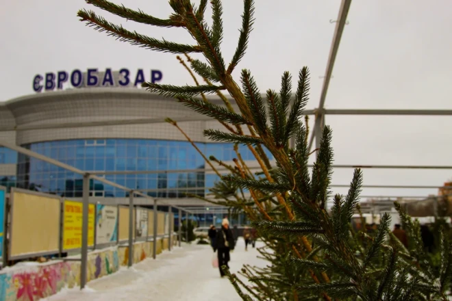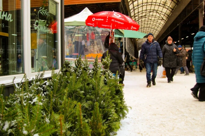 За кілька днів до Нового року на сумському базарі людно. Сум’яни купують продукти до столу й обирають хвойні дерева.