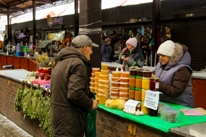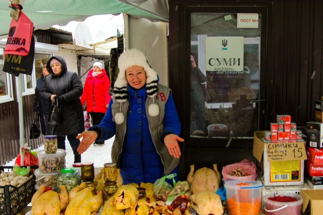 Журналісти MistoSumy відвідали селянський базар і ялинковий ярмарок в центрі міста, щоб зафіксувати, що нині продають на прилавках.