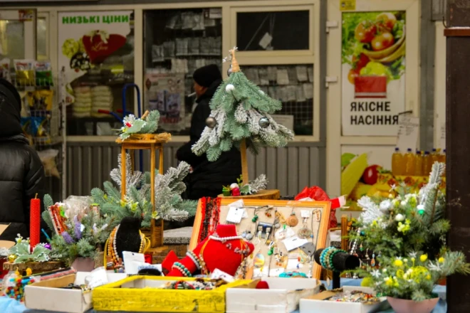 Поруч працює ялинковий ярмарок. Тут містяни купують сосни, ялинки та композиції зі смереки. Ціни стартують від 500 гривень. За словами продавців, вартість окремих дерев сягає 1500 гривень.
