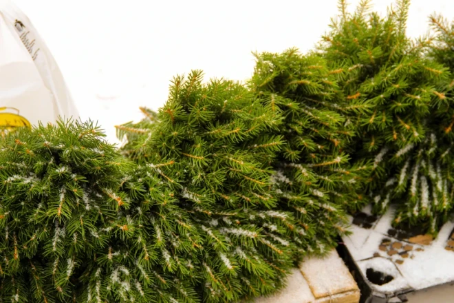 На ялинковому ярмарку ми побачили дерева з бирками та штрих-кодами. Під час купівлі варто звертати увагу на легальність походження ялинки, адже хвойні дерева ростуть повільно і виконують важливі екологічні функції. За незаконну вирубку ялинки або сосни в межах населеного пункту передбачений штраф, тоді як легальні дерева вирощують на спеціальних плантаціях.