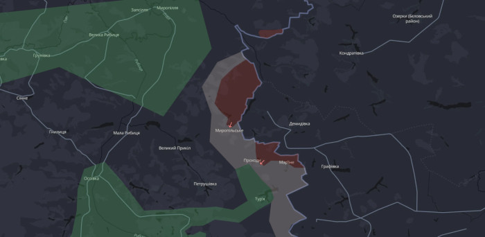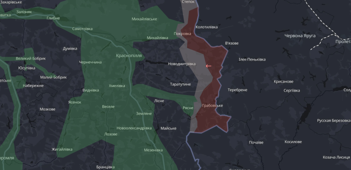 Також армія РФ просунулася в районі Новодмитрівки. Тут "червона" зона збільшилася на близько 6 кв. км. "Сіра" зона розширилася на 11 кв. км і становить 26,16 кв. км, за даними аналітиків.