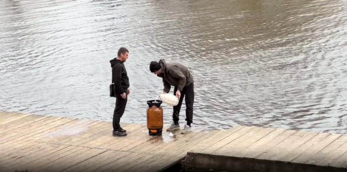 За водою містяни йдуть пішки, також вантажать повні пляшки у власні авто. Дехто набирає воду з річки.