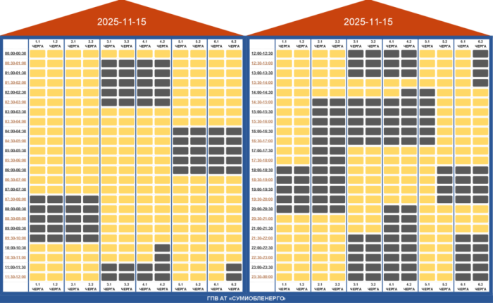 Завтра, 15 листопада, відповідно до команди НЕК “Укренерго”, на Сумщині діятимуть графіки погодинних відключень: