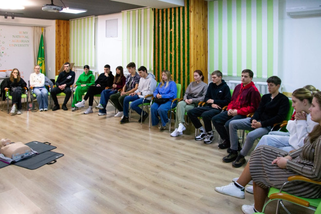 Інструктори навчально-тренувального відділу Сумського обласного центру екстреної медичної допомоги та медицини катастроф провели майстер-клас із серцево-легеневої реанімації для студентів Сумського національного аграрного університету
