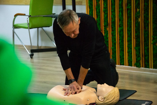 – правильно виконувати серцево-легеневу реанімацію – натискання на грудну клітку, контроль дихання, проведення рятувальних вдихів;
