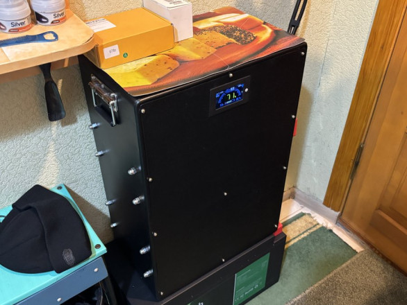 “Акумулятор складається з комірок, які називаються літій-залізо-фосфатні. Це зараз найкращі комірки. Чотири комірки – це виходить 12 В, а вісім – 24 В. От у мене той акумулятор іде на 24 В. І там набрано таких комірок, і вони заряджаються, коли є сонце. Можна заряджати також від мережі. А коли немає електрики в мережі, акумулятор віддає на інвертор, інвертор перетворює цю всю енергію для того, щоб підживити споживачів у квартирі”