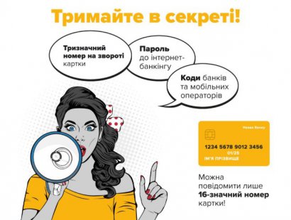 – Не надавайте реквізити банківських карток, коди з SMS та інші персональні дані стороннім особам.