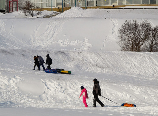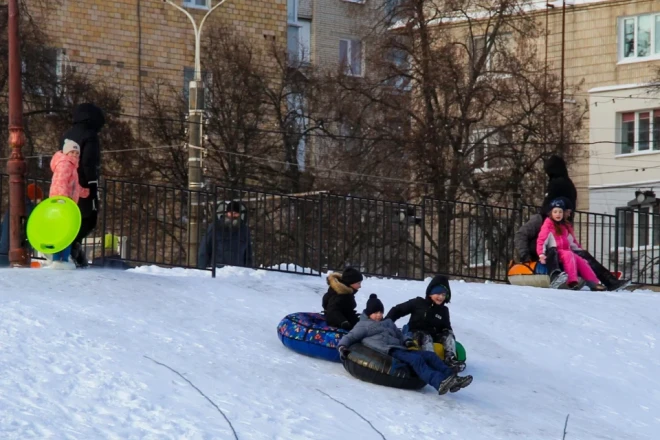 Попри люті морози місто продовжує жити. Хтось поспішає у справах, хтось замовляє їжу додому, а хтось дістає льодянки, тюбінги, санчата, ковзани, лижі.