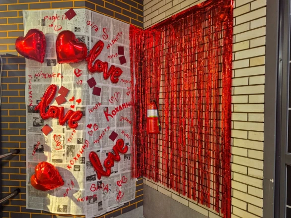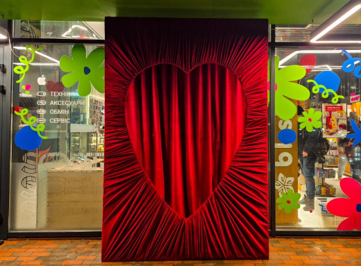 У Сумах напередодні Дня святого Валентина на вітринах магазинів і кав’ярень з’явилися тематичні фотозони та святковий декор.