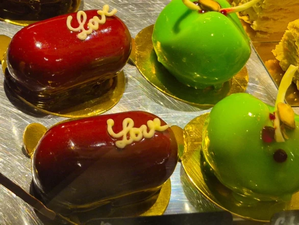 На вітринах магазинів і кав’ярень з’явилися серця, червоні стрічки й банти, а також написи «love». Деякі заклади дали друге життя новорічному гіллю хвої — тепер його прикрашають червоні серця.