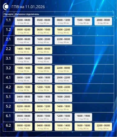 У неділю, 11 січня, на території Сумської області продовжуватимуть діяти графіки погодинних відключень електроенергії.