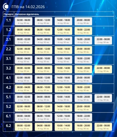 У суботу, 14 лютого, на території Сумської області продовжуватимуть діяти графіки погодинних відключень електроенергії.