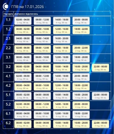 У суботу, 17 січня, на території Сумської області продовжуватимуть діяти графіки погодинних відключень електроенергії.