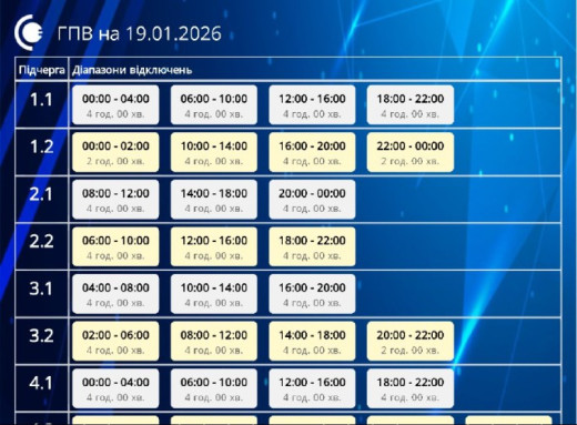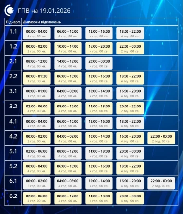 У понеділок, 19 січня, на території Сумської області продовжуватимуть діяти графіки погодинних відключень електроенергії.