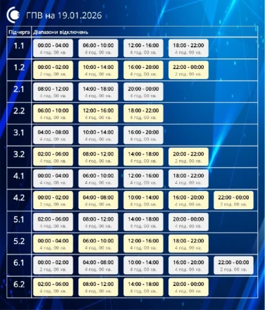 У понеділок, 19 січня, на території Сумської області продовжуватимуть діяти графіки погодинних відключень електроенергії.