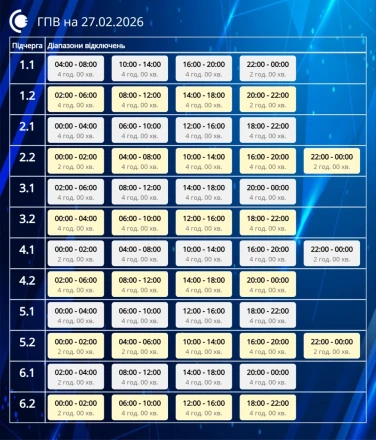 Обмеження застосовуються відповідно до обсягів, визначених національною енергетичною компанією «Укренерго». Причиною дефіциту в енергосистемі залишається збройна агресія росії проти України. Енергетики попереджають, що протягом доби графіки можуть змінюватися залежно від поточної ситуації в мережі.