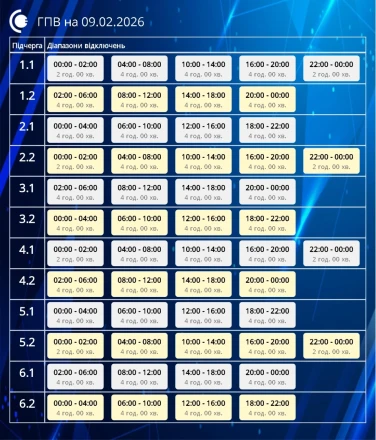 У понеділок, 9 лютого, на території Сумської області продовжуватимуть діяти графіки погодинних відключень електроенергії.