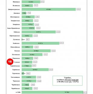Показник Сумської області — 14,2% (+1 млрд гривень). Це – 16-те рейтингове місце серед регіонів України (на рівні рейтингу попереднього місяця).