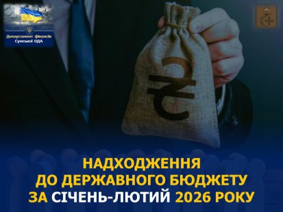 За січень-лютий 2026 року платниками податків Сумської області до загального та спеціального фондів державного бюджету мобілізовано 3,1 млрд гривень (+0,2 млрд гривень до минулого року), повідомляє Департамент фінансів Сумської обласної державної адміністрації.