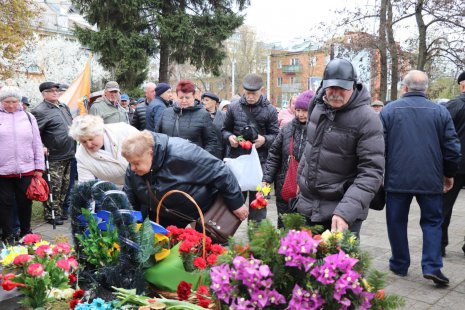 Біля пам’ятного знаку «Жертвам Чорнобиля» учасники ліквідації, представники міської та обласної влади, жителі громади поклали квіти та хвилиною мовчання вшанували пам’ять загиблих.