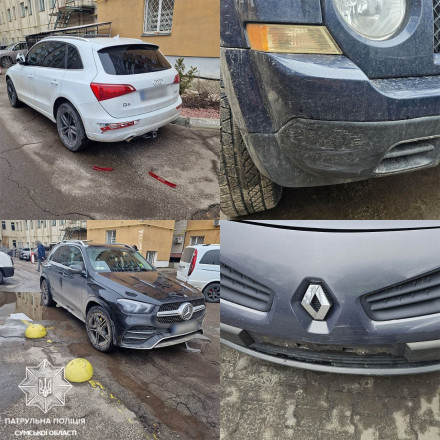 На вулиці Герасима Кондратьєва 65-річний водій автомобіля Mercedes-Benz, не дотримавшись безпечного інтервалу, здійснив наїзд на припаркований автомобіль Audi та залишив місце ДТП.